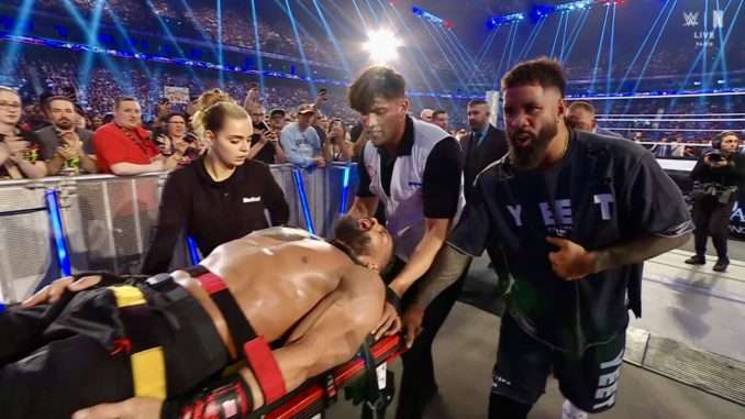 Tras la lucha, Reigns noquea a Paul Heyman con su guillotina, recupera sus dos pares de zapatillas y se pone a firmarlas y lanzarlas al público desde encima de la mesa de comentarios, pero Bron Breakker interrumpe el acto con un sorpresivo Spear sobre la mesa, lo remata con otro en la rampa y, por si esto fuera poco, Bronson Reed y él lo llevan al ring para recibir dos Tsunamis. Hasta Jey Uso, que sale para ayudar a su primo —después de que lo dejen para sacarlo en camilla— sale mal parado tras recibir un Spear de Breakker.