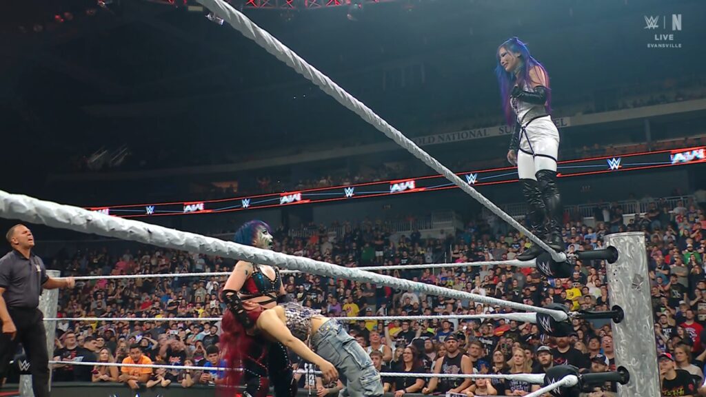 Si no nos centramos solo en lo que estas dos grandes luchadoras son capaces de hacer sobre la lona, podremos apreciar un trabajo impecable, donde el estilo de Bayley cambia en el momento en el que empieza a oír las voces en su cabeza, se torna mucho más agresiva y trata a Roxanne, que hasta entonces había dado batalla, como un trapo.