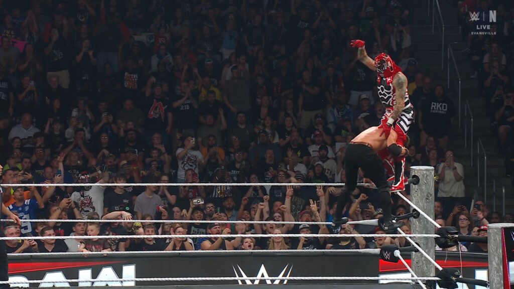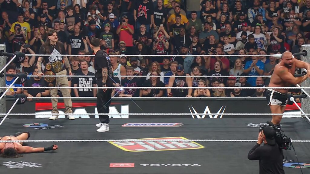 Aquí podemos ver cómo todo lo que rodea a Jey Uso no es solo su historia, él la acompaña con actitud. Aunque sigue haciendo su entrada y se le sigue queriendo por ello, le vemos más serio y agresivo. Viste de negro y en su camiseta no hay ningún logo ni la palabra yeet por ningún lado. Además su estilo también se ha vuelto más contundente, cosa que le beneficia y disimula sus carencias. En definitiva, es un combate más entretenido de lo que cabía esperar, donde Jey Uso se lleva la victoria gracias a que LA Knight se distrae con Bron Breakker y Bronson Reed.