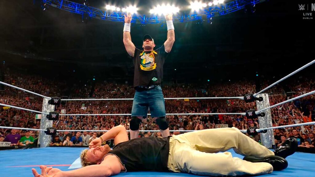 Sí, lo destroza, lo hace añicos, lo humilla, lo entierra… Cualquier verbo me sirve, porque la promo que ha lanzado el diecisiete veces campeón ha sido devastadora para Logan Paul. No conforme con que el público diga que es un intruso en la industria del wrestling, John Cena lo llama parásito por aprovecharse de su posición en la compañía para sus propios fines, como promocionar su marca: Prime. También es muy notoria la comparación donde recalca que en estos cuatro años —me parecen muchos para lo que ha hecho— solo ha tenido veintitrés combates, mientras que él lleva veintitrés años dejándose la piel por esta industria. Y por si esto fuera poco, lo deja tirado en la lona tras un Attitude Adjustment que, todo hay que decir, Logan Paul se ha esforzado poco en vender, pues al poco se estaba incorporando con una sonrisa.